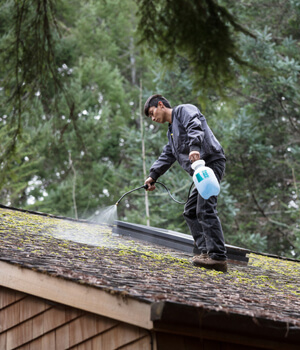 It is true that you could use a power washer to blast the moss off the roof. However, high water pressure could further damage shingles that are already chipped or worn out. The water blast can also strip off the shingle’s granules that help protect your roof from adverse weather. If you decide to use a power washer, use the lowest pressure setting and stand at the top of the roof to wash the moss downward.