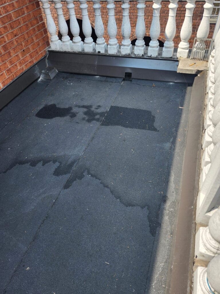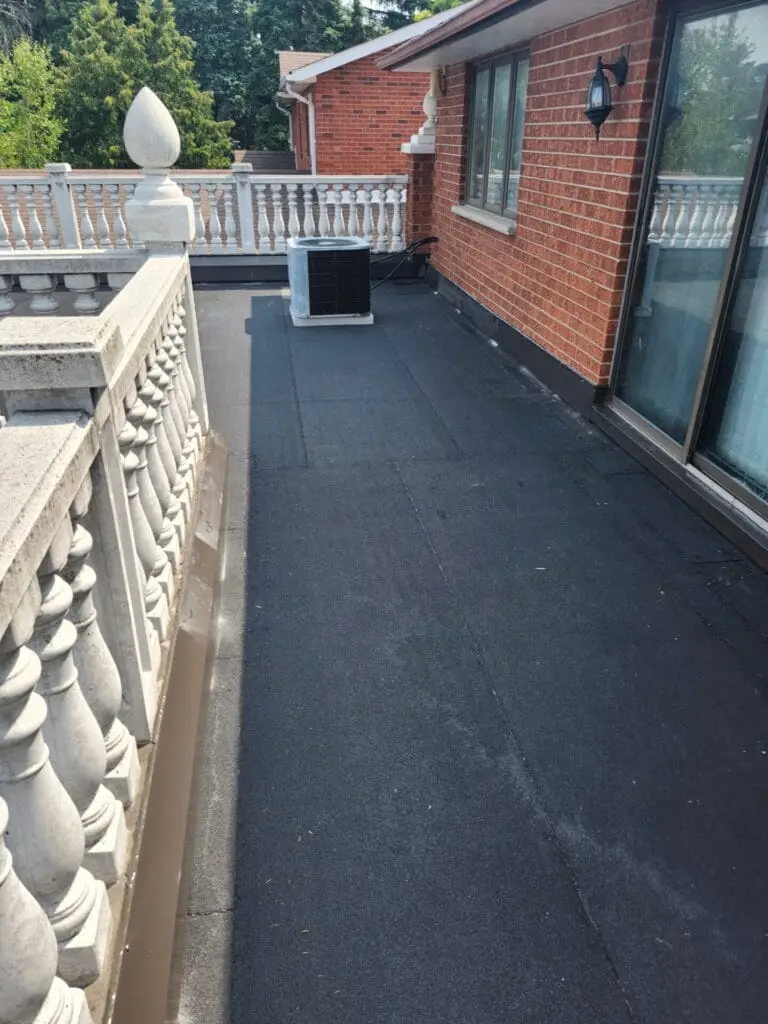 The property’s existing flat roof had reached the end of its service life. The older 4-ply roofing system was no longer a reliable barrier against Toronto’s frequent rain, snow loading, and freeze–thaw cycles – conditions that can accelerate seam failures, trapped moisture, and gradual water infiltration. To prevent recurring leaks and protect the building envelope, the roof required a full replacement rather than spot repairs.