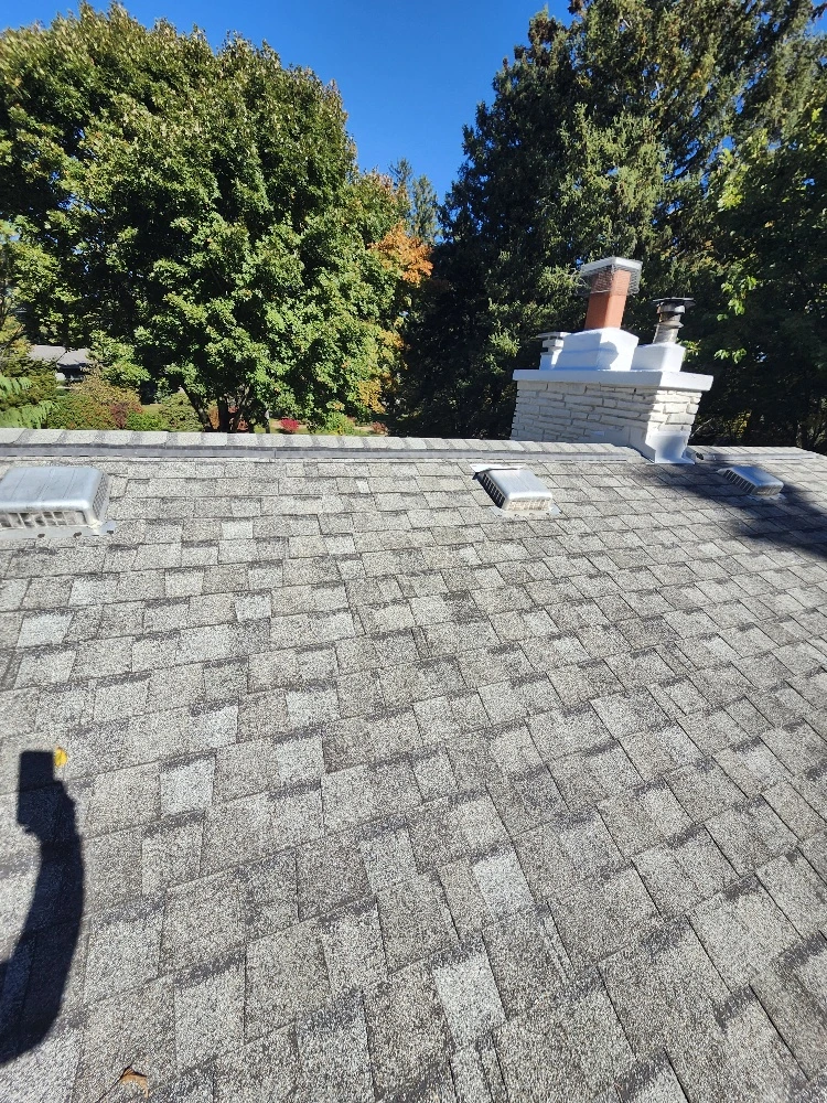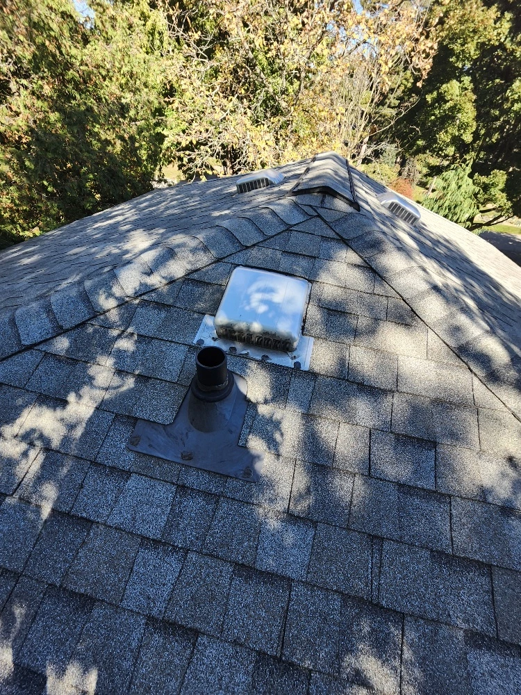 The completed roof repairs provided the homeowner with improved sealing at vents, skylights, and the chimney, better debris control through the added gutter guard, and upgraded protection on the shed roof through shingle replacement.