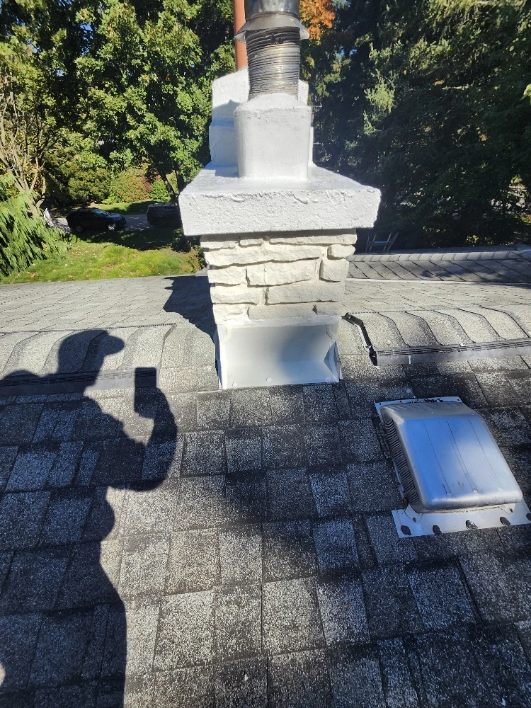 Where necessary, the chimney was caulked to improve the seal around its base and reduce the risk of moisture intrusion.