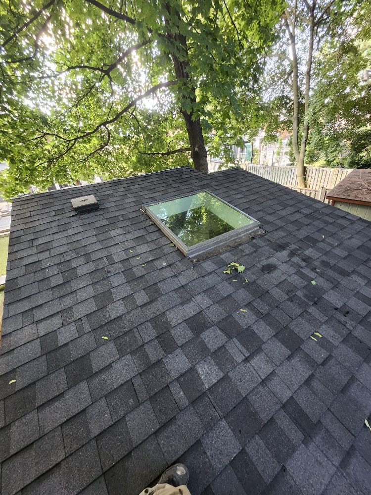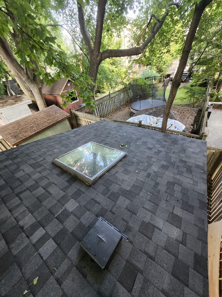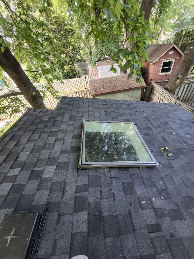 The homeowner’s roof and skylight system were due for replacement, creating concerns about long-term leak protection and overall roof performance. Aging roofing materials and worn skylight flashing are common sources of water intrusion – especially in Toronto’s freeze–thaw cycles – so the home required a full replacement approach to restore dependable, watertight coverage.