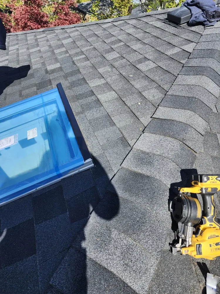 - New shingles installed: Fresh shingles were installed around the skylight opening to create a clean, watertight transition.